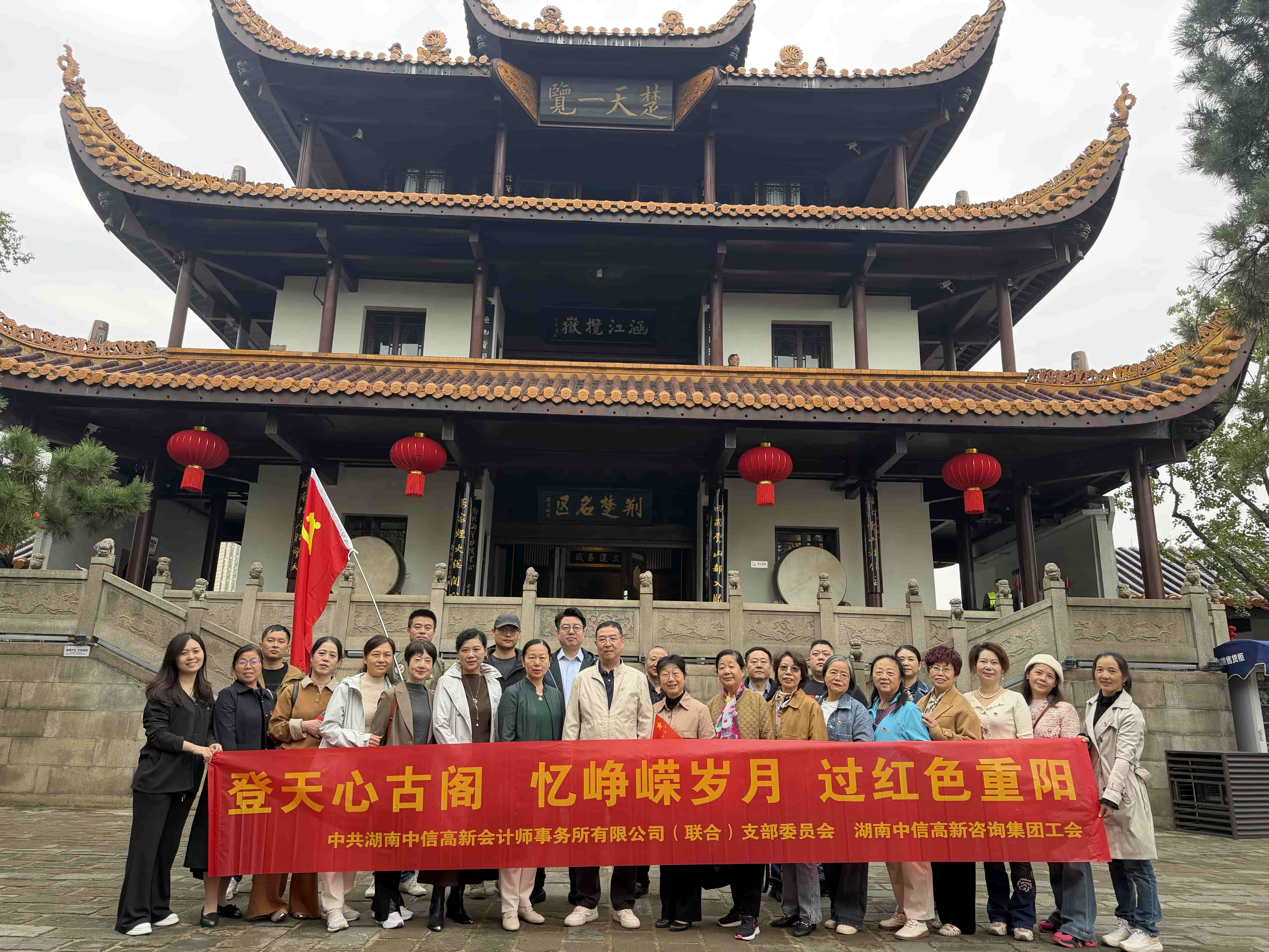 金秋送爽,丹桂飘香!在重阳节这个承载着尊老敬老传统的节日里,湖南中信高新会计师事务所有限公司(联合)党支部与湖南中信高新会计师事务所有限公司工会委员会和湖南中信高新工程造价咨询有限公司工会委员会联合开展“登天心古阁 忆峥嵘岁月 过红色重阳”党建+重阳节敬老主题活动,向为集团发展倾注心血的老同志们致以最诚挚的敬意与祝福。今日集团所取得的每一项成绩、每一步跨越,都离不开老同志们多年来的辛勤耕耘。他们曾在岗位上攻坚克难,以专业素养筑牢集团发展根基;曾以无私奉献的精神,为年轻一代树立榜样;更始终以发自内心的理解与全力支持,成为集团前行路上最坚实的后盾。