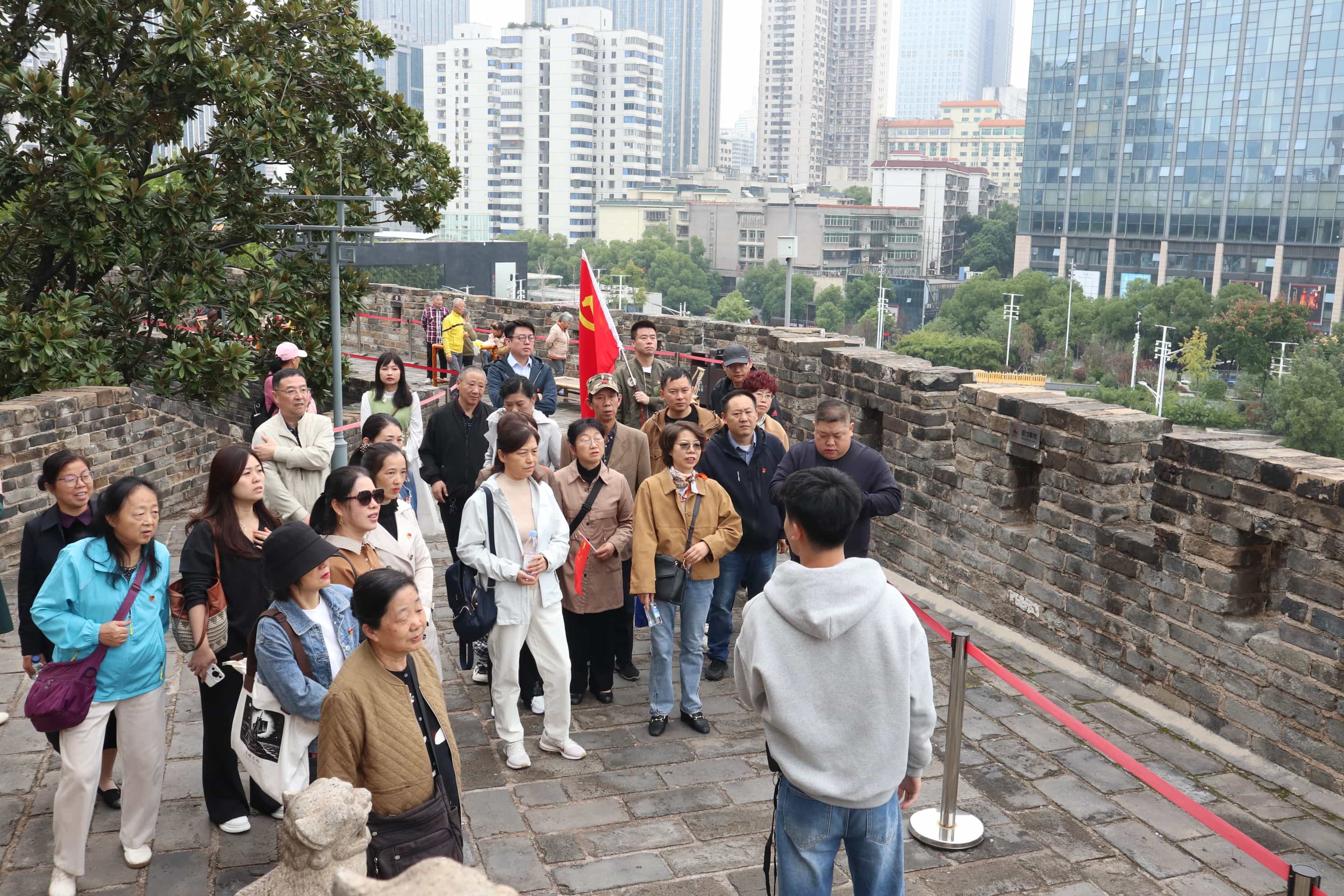 提质改造后的天心公园,不仅守住了历史的根基,还增添了生活的气息,让历史文化遗产与现代园林景观融合在一起!党员们陪着老同志们漫步于城楼之下,听讲解员结合天心阁的百年历史变迁,讲述革命年代里长沙人民与古阁相关的红色故事。从抗战时期的城防记忆到新时代的文化保护实践,老党员们不时驻足沉思,向年轻党员分享亲身经历的岁月变迁,年轻党员则认真聆听,在历史与现实的交汇中感悟“不忘初心、牢记使命”的深刻内涵。